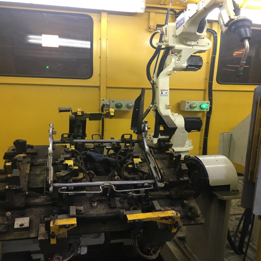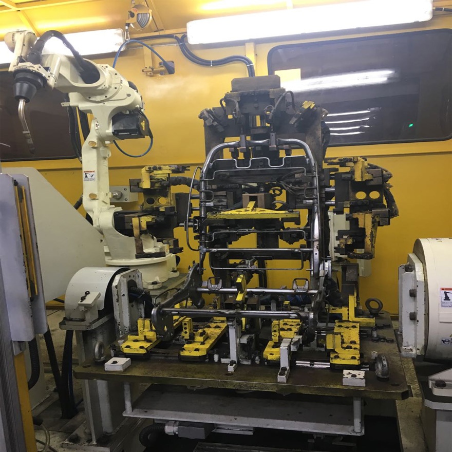 汽車(chē)座椅骨架焊接工作站包含長(zhǎng)臂焊接機(jī)器人1套、機(jī)器人安裝底座1套、單軸氣動(dòng)變位機(jī)2套、焊接工裝夾具3套(針對(duì)客戶(hù)工件進(jìn)行設(shè)計(jì)制造)、機(jī)器人控制系統(tǒng)1套、機(jī)器人示教器1套、焊接電源1套、機(jī)器人專(zhuān)用焊槍1套、外部控制盒2套。