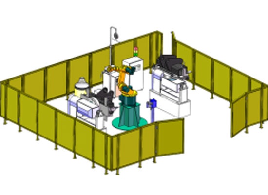 整套推土機橫梁及翻斗自動化焊接工作站由焊接機器人系統(tǒng)、伺服變位機、系統(tǒng)控制器、觸摸屏、焊接控制器、焊槍單元(焊槍和變壓器)、行走機構及焊接輔助設備(冷化電源、壓縮空氣單元、安全光幕、冷卻水單元、電極修磨器、清槍剪絲器、升降式遮光簾)構成。