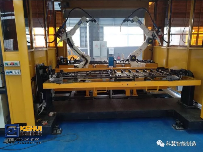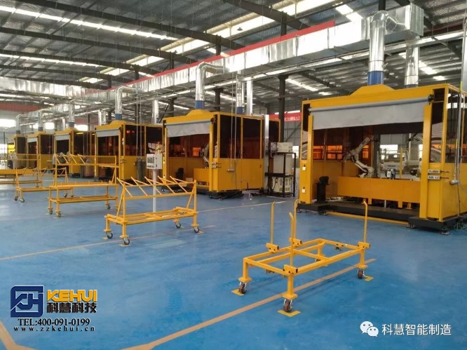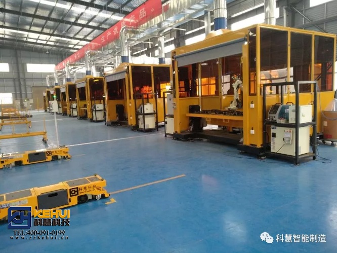 科慧科技打造的該條畜牧設(shè)備柔性自動(dòng)化生產(chǎn)線,運(yùn)用24臺(tái)工業(yè)焊接機(jī)器人、12套工作站、2臺(tái)全自動(dòng)激光切割機(jī)、2臺(tái)全自動(dòng)沖弧口機(jī)、3臺(tái)自動(dòng)切管機(jī)、4套智能AGV小車物流搬運(yùn)系統(tǒng)、5臺(tái)自動(dòng)彎管機(jī)、抽煙除塵系統(tǒng)、雙氣路集中供氣系統(tǒng)、可視化管理系統(tǒng)及中樞集中控制系統(tǒng)。實(shí)現(xiàn)畜牧產(chǎn)品從原材料下料-智能物流-自動(dòng)焊接-成品下料為一體的智能化生產(chǎn)線,可視化管理可以實(shí)時(shí)對(duì)生產(chǎn)線進(jìn)行監(jiān)控及管理,抽煙除塵系統(tǒng)可實(shí)現(xiàn)無煙化車間。