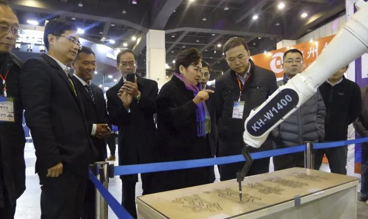 開幕式后,各領(lǐng)導(dǎo)蒞臨科慧科技展位參觀指導(dǎo),科慧科技董事長陳志宏做了詳細(xì)介紹,國家工業(yè)和信息化部裝備工業(yè)司副巡視員曹鋼表示,智能制造的實現(xiàn)需要有一大批像科慧這樣重視研發(fā)、勇于創(chuàng)新的企業(yè)涌現(xiàn),并對科慧科技對于智能制造發(fā)展的貢獻(xiàn)給予了高度評價,希望科慧科技為推動智能制造繼續(xù)不懈努力。