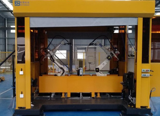 柔性自動化焊接系統(tǒng)采用雙工位雙機器人,實現(xiàn)焊接全自動化。機器人利用效率高,工人勞動強度低,焊接品質(zhì)好,產(chǎn)品的不良率低,其整體生產(chǎn)效率是人工的4-5倍。