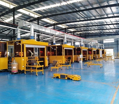 該項目運用24臺工業(yè)焊接機器人、12套工作站、2臺全自動激光切割機、2臺全自動沖弧口機、3臺自動切管機、4套智能AGV小車物流搬運系統(tǒng)、5臺自動彎管機、抽煙除塵系統(tǒng)、雙氣路集中供氣系統(tǒng)、可視化管理系統(tǒng)及中樞集中控制系統(tǒng)。