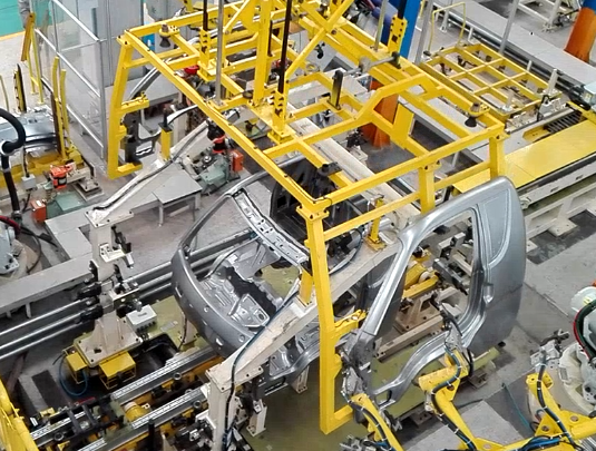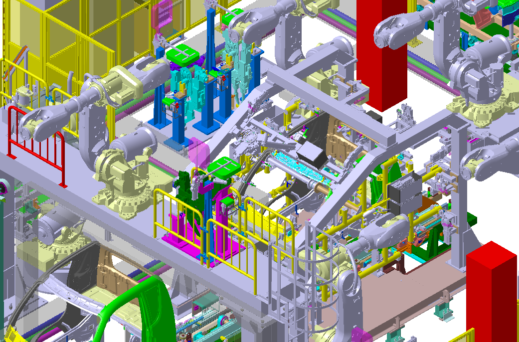 主區(qū)側圍到主線總拼工位,下降到機器人抓取位置,機器人抓取側圍到夾具工位,然后抓手脫離,換取焊鉗進行焊接。