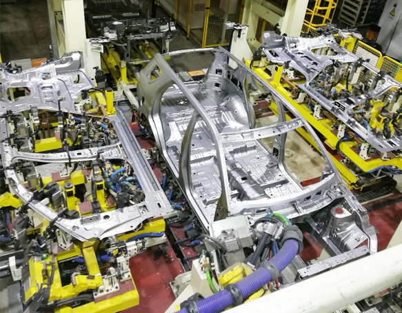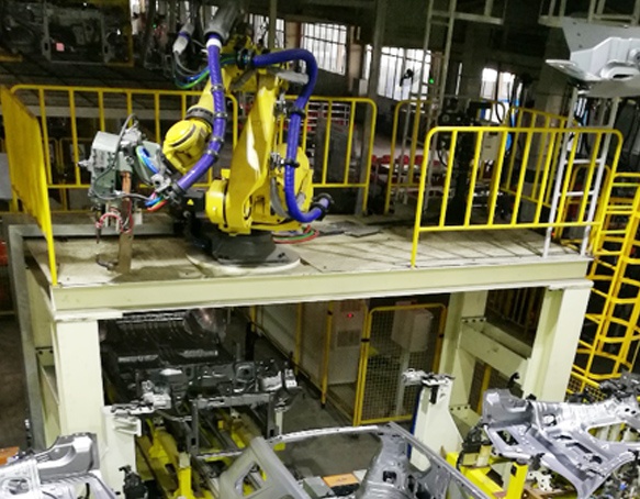 該平臺(tái)由兩條焊裝主線,各部件分拼線,機(jī)器人滾邊構(gòu)成,集自動(dòng)化、信息化、數(shù)字化等特點(diǎn)于一體。使得輕卡、微卡自動(dòng)焊接能力、生產(chǎn)能力、工藝能力、試驗(yàn)驗(yàn)證能力達(dá)到較高水平,全面提升了輕卡微卡產(chǎn)品的生產(chǎn)質(zhì)量和生產(chǎn)效率。