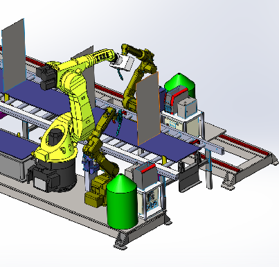 4、內(nèi)縫焊接工位機(jī)器人加上聯(lián)動(dòng)外部軸,使機(jī)器人可達(dá)無(wú)死點(diǎn)。